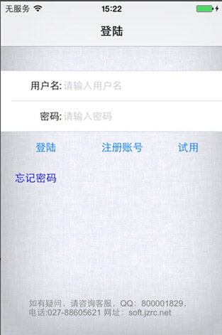4)、用户第一次安装使用需要注册账号,点击注册,注册账号;已有账号用户可以直接点击登陆,试用户可直接点击试用。