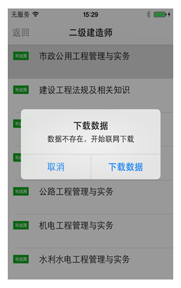 长按科目——提示下载数据——点击下载数据——下载完整以后字体为红色。