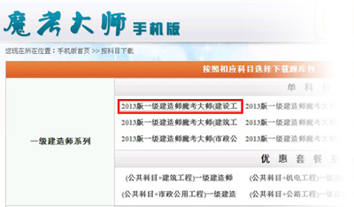 6)选择考试类型,这里以二级建造师为例,点击二级建造师,进入选择科目下载题库。