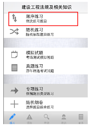 顺序练习的功能可以让考生根据知识点自主选择,逐个练习,以跟随教材,强化知识点的学习;