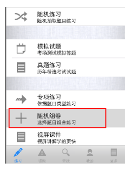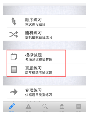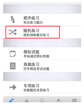 l 可按顺序练习、真题试卷、模拟试卷以及随机组卷的功能进行查看