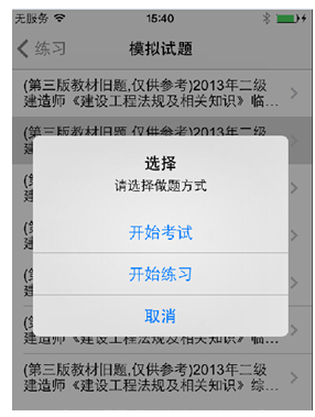 模拟考试同样具有练习模式和考试模式二种,考生可能自主选择。