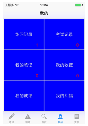 l 点击底部菜单中的“错题”,就可以看到错题简况(练习随机模式错题,模拟真题考试错题)