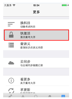 IOS版有两种激活方法,只有在魔考大师官网下载的软件可以直接在手机上点击快激活,而appstore上下载的版本,需要进魔考大师官网上激活注册好的账号。