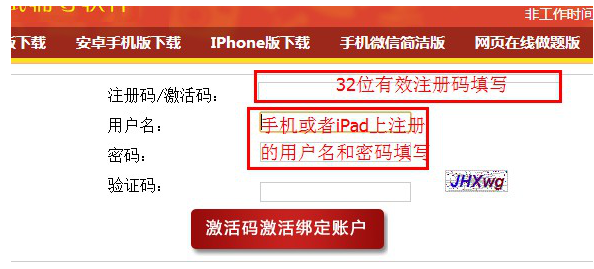 3、考生用户将注册码填写在注册界面的"注册码"处,并点"注册激活"按钮",则用户将转化成正式版的用户